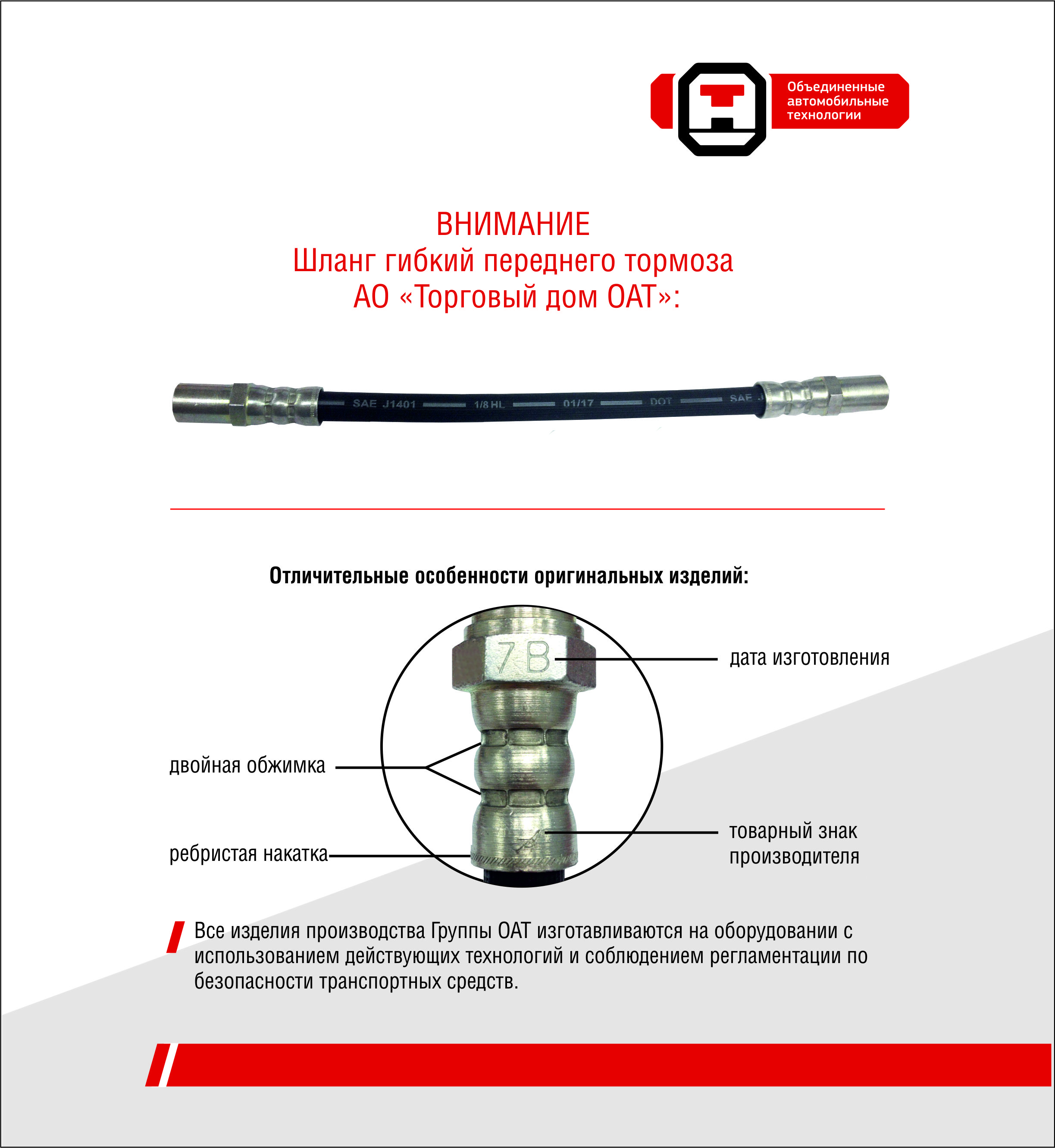 Отличительные особенности изделия "Шланг гибкий переднего тормоза":